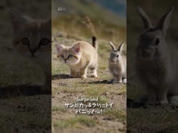 【衝撃映像】空から子猫が降ってきた!?驚く赤ちゃんスナネコとウサギが可愛すぎる…!