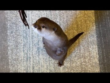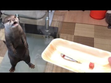 カワウソさくら 夜ご飯に刺身食べてたら近づいてきて…? Otter eating fish fillet