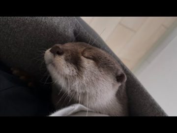 カワウソさくら 飼い主の背中で巣作りを始める otter that starts nesting on the owner’s back