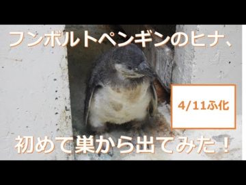 フンボルトペンギンのヒナ、初めて巣から出てみた!