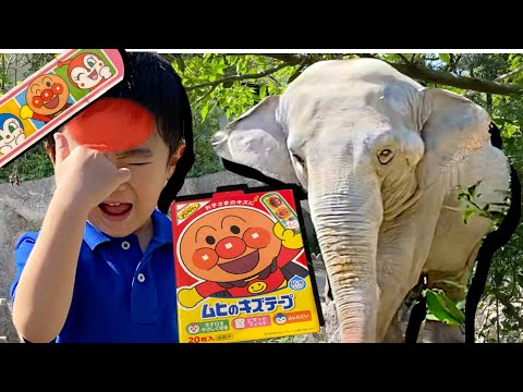 【アンパンマンばんそうこ】 動物園で手当てごっこ 動物にアンパンマンのばんそうこを貼ってあげるよ! The boo boo song & boo boo story